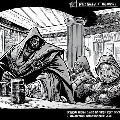 He approached Kindly Bob. He wasn't just tall, though he was in fact in danger of scraping his head on some of the lower beams. He was bulky, with an unnatural wideness that somehow escaped looking obese. He maneuvered across the floor with no particular grace, yet managed to evade the haphazardly strewn chairs and tables, and the odd outstretched arms or legs of patrons in various stages of inebriation.